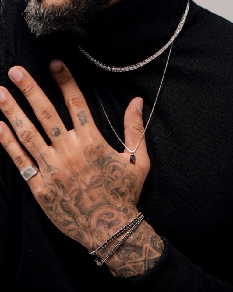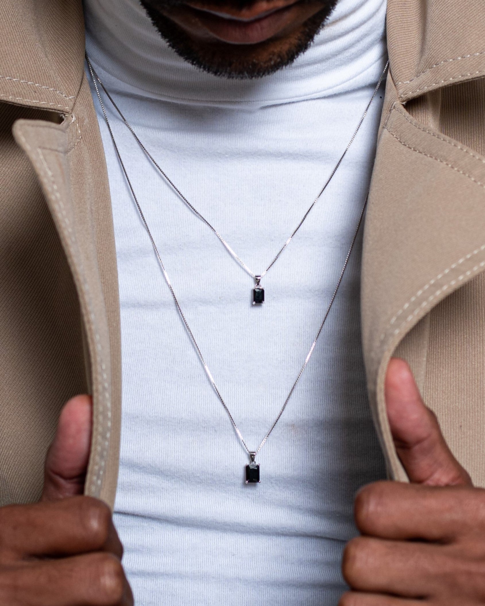 Descrição: Colar de Fio Italiano (Veneziana) em Prata 925, pingente cravejado de zircônia ônix, acabamento exclusivo - Alta Joalheria.
